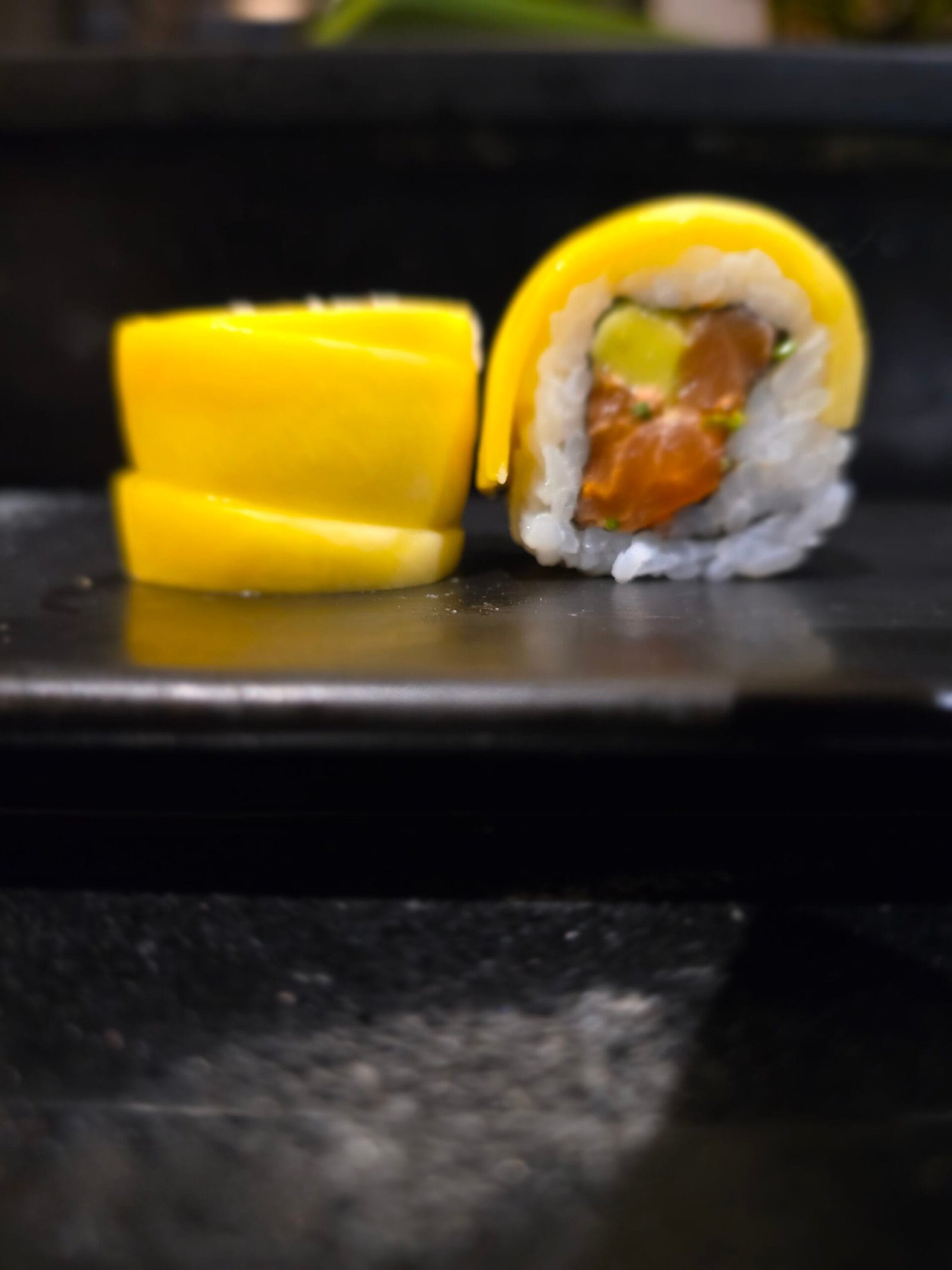 Saumon, ciboulette, tongarashi, mayo, philadelphia , avocat, mango