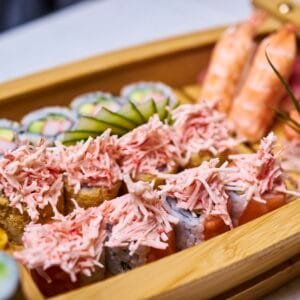 4 pcs California salmon tempura, 4 pcs California Tuna & Salmon, 4 pcs Salmon wrap tempura & avocado, 4 pcs Salmon wrap tuna & avocado, 4 pcs Tobico wrap salmon & avocado, 4 pcs Tobico wrap tuna & avocado, 4 pcs Spiral salmon & tempura, 4 pcs Spiral salmon & tuna, 4 pcs Avocado wrap salmon