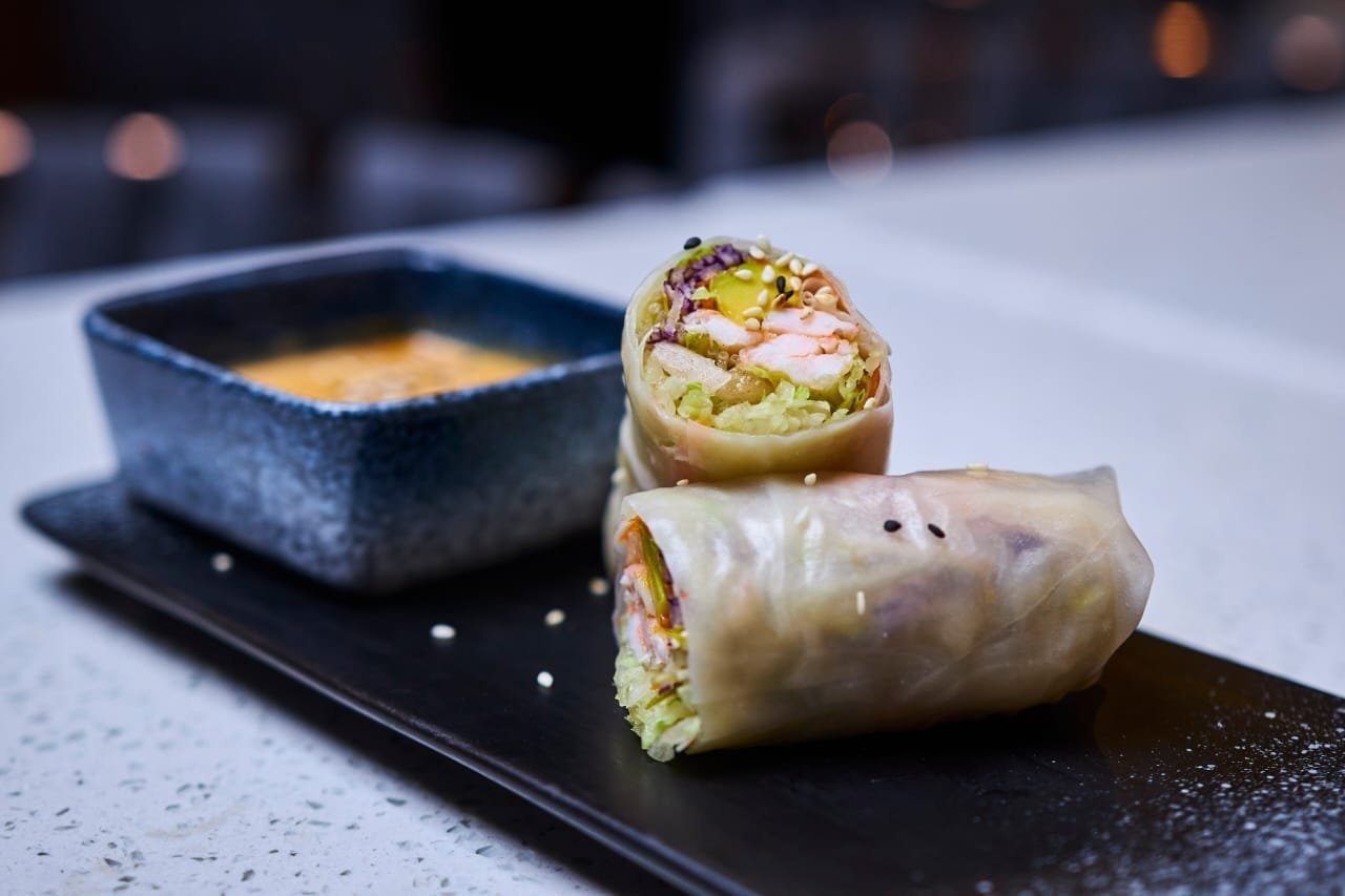 Crevettes, légumes, avocat, céleri, roulés sur du papier de riz vietnamien