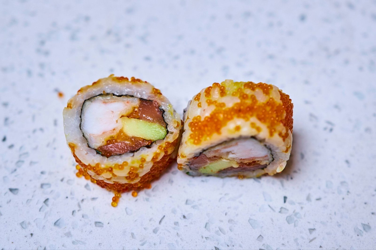 Saumon, ciboulette, crevette, tongarashi, mayo, philadelphia
